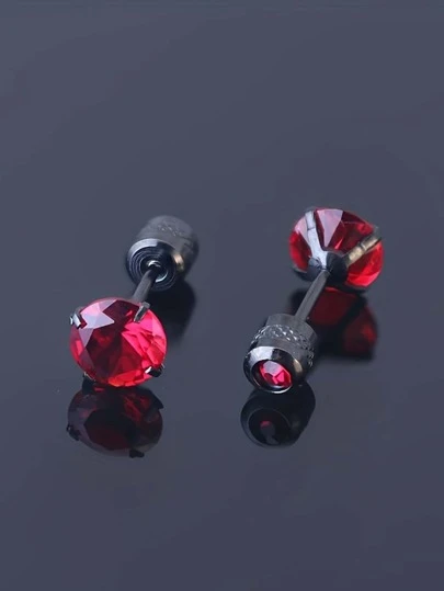 平底螺絲後耳釘適合男士不銹鋼方晶鋯石彩虹耳環適合女士男孩耳朵骨釘狀首飾雙頭立方氧化鋯首飾類 - A-紅CZ 1對 - 查看 4