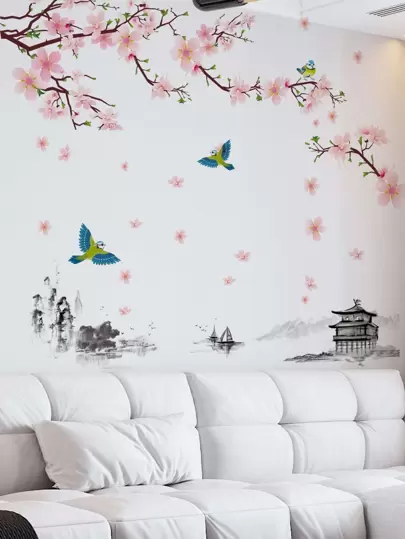 花朵和小鳥圖案墻面貼紙 - 彩色 - 查看 1