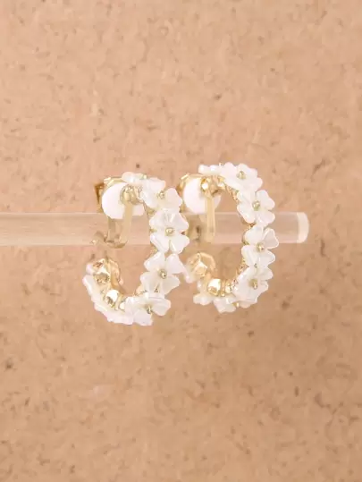 花朵装饰夹式耳环 情人节、妈妈、母亲、母亲节、礼物 - 金黃色 - 查看 6