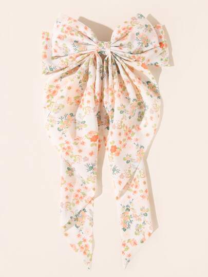 花朵圖案蝴蝶結裝飾髮夾 - 彩色 - 查看 1
