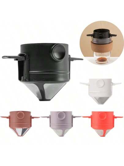 可折叠便携式咖啡过滤器咖啡壶不锈钢滴滤咖啡茶架可重复使用无纸化咖啡滤杯 - 彩色 - 查看 1