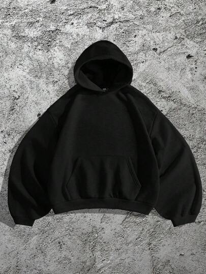 Forever 21 男士宽松休闲浅灰色弧形超宽松袖连帽套头衫 - 黑色 - 查看 1