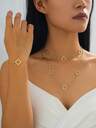 1 套时尚夸张金属镶嵌珍珠半手镯和戒指珠宝迷你套装,礼物