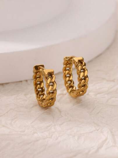 1 对链环状耳环女士不锈钢 18K 镀金耳环时尚朋克日常珠宝礼物 - 1 - 查看 10
