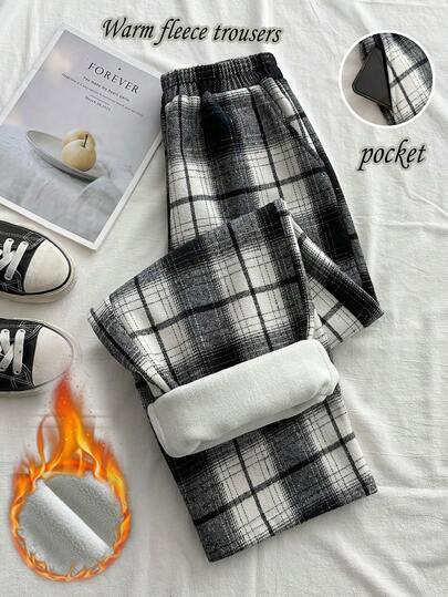 Franclia 日常百搭舒适休闲黑杏格子女秋冬保暖内衬加厚冬裤女冬裤女圣诞保暖内衬长裤 - 彩色 - 查看 1