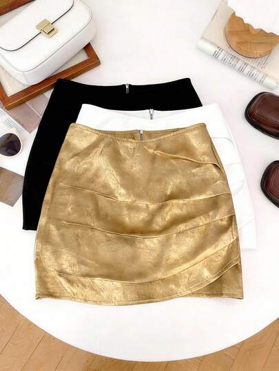 Franclia 女士优雅浅金色百褶A字迷你裙,百搭时尚休闲裙,适合夏季、海滩、音乐节、约会、日常穿着、情人节、派对等场合。 - 金色 - 查看 1