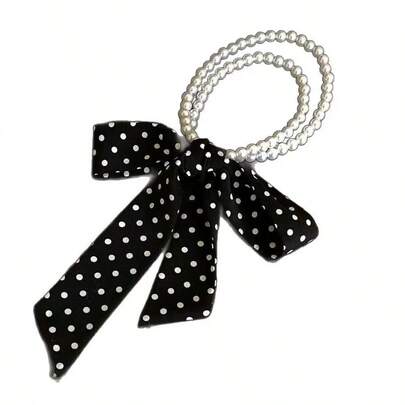 法式复古珍珠丝巾项链,优雅锁骨链,女士发圈,包带 - 彩色 - 查看 1