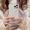 Y2K 防震电镀银色新奇苹果创意 3D 竖条纹褶皱纹理手机壳 竖条纹纹理凹凸纹理防水防摔防刮生日礼物