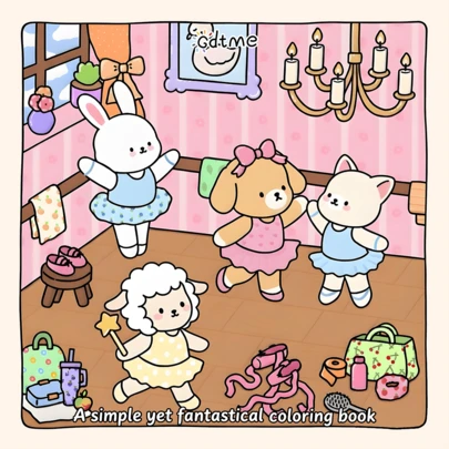 GDTME 涂色书4:可爱温馨的成人涂色书,24页厚纸,7.87*7.87英寸,包含易于涂色的动物插图和可爱场景 - 144 - 查看 1