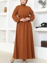 女士时尚素色荷叶边连衣裙,腰部收紧,饰有珠饰,阿拉伯风格长款端庄连衣裙