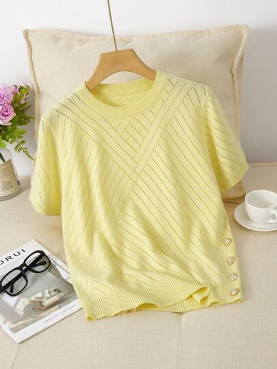 GIGOGOU 女士基础款休闲短袖T恤,时尚春夏款 - 黃色 - 查看 1