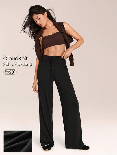GLOWMODE CloudKnit 休闲运动弹力柔软轻盈可调节抽绳腰带侧插袋宽松版型慢跑裤日常休闲街头服饰 - 黑色 - 查看 1