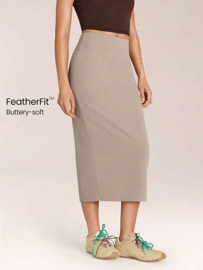 GLOWMODE Metro Moves 吸湿速干 UPF 50+ 塑形收腹长裙,日常休闲街头风 - 卡其色 - 查看 1