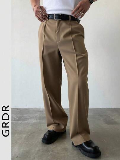 GRDR 男士时尚宽松阔腿西装裤,适合休闲和商务场合穿着 - 咖啡棕 - 查看 1