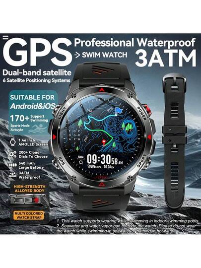 GUHUAVMI 2025 新款男士户外 GPS 运动智能手表,GPS+北斗双频定位,LED 手电筒,3ATM 防水手表,合金机身,540mAh 电池,多色表带,无线通话,语音助手,提醒功能,GPS 追踪,100+ 种运动模式,指南针,海拔和气压,健身追踪器手环,女士户外运动智能手表,适用于 Android IOS - 彩色 - 查看 5