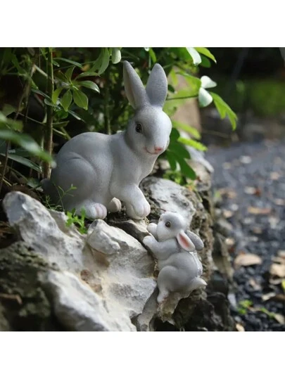 花園雕像雕塑兔子擺件微景觀diy玻璃花園裝飾復活節兔子雕像庭院/植物花盆