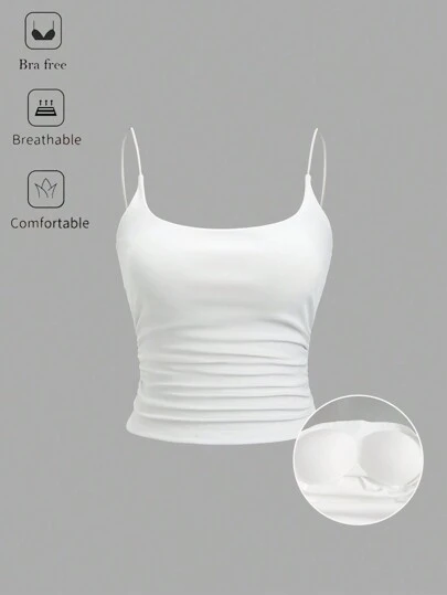 FavEase 1 件百搭加垫褶皱吊带背心,纯色 - 白色 - 查看 1