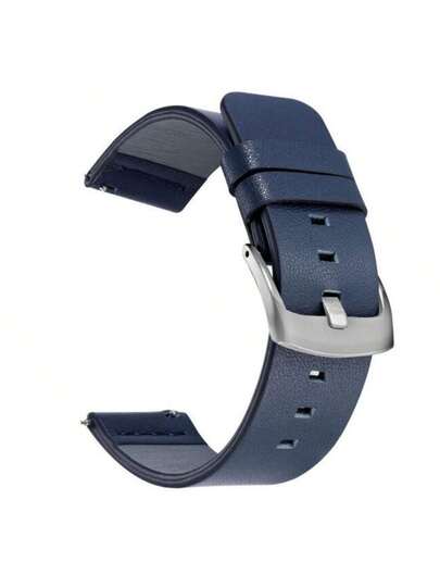 PU 皮革手链兼容三星 Galaxy Watch 3 Active 2 智能手表配件 Gear S3 表带 18 毫米 20 毫米 22 毫米 24 毫米时尚表带 - 藍帶銀扣 - 查看 1