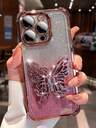 豪华电镀透明手机壳,带蝴蝶液体沙支架,水钻闪光闪耀风格,硅胶防震软壳兼容 16/16e/16 Pro/16 Pro Max/16 Plus/15/14/13/12/11/X/XS/XR/8/7、Galaxy S25/S24/S23/S22/S21/A55/A54/A53/A52/A35/A34/A23/A16/A15/A14/A13/A12/A05S/FE/Ultra/4G/5G,以及 Redmi/Honor/MOTO/OPPO/Infinix 防水防摔防刮