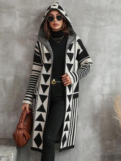 EMERY ROSE 幾何圖案落肩袖連帽開襟開衫 - 彩色 - 查看 1