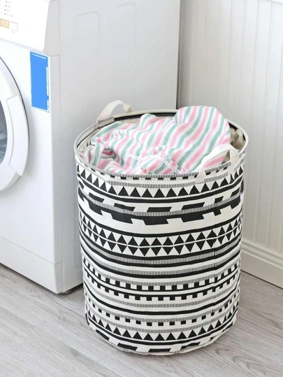 1 件装织物收纳篮,防水衬里,适用于衣服和玩具 - 黑與白 - 查看 1