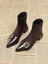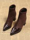 优雅复古高跟短靴,2025秋冬新款时尚皮革麂皮拼接后拉链踝靴,百搭通勤时尚靴,优雅