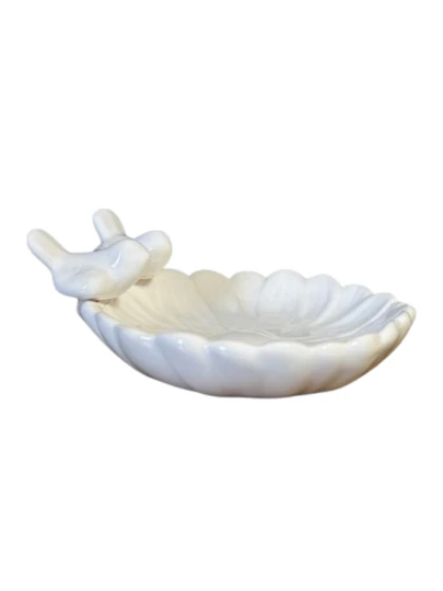 Ceramic Soap Dish For Kitchen Or Bathroom Decorated With Sunflower And Bird - 白色 - 查看 1
