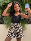 少女休闲日常度假花瓣领拼接撞色豹纹连体裤