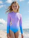 SHEIN 少女渐变色拉链镂空长袖连体泳衣