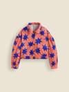 Sparklyn Tween Girl 花卉植物叶子印花短款乡村风棒球夹克,秋季轻便款