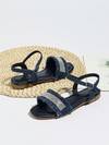 儿童及青少年时尚可爱流苏牛仔布水钻公主闪亮平底凉鞋,舒适防滑软底,适合户外、室内、派对等各种场合,四季皆宜
