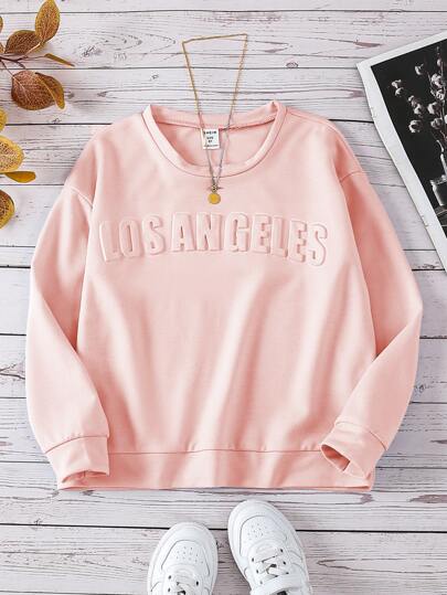 女孩字母落肩袖運動衫 - 淺粉色 - 查看 1