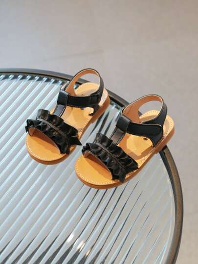 女童荷叶边踝带凉鞋 - 黑色 - 查看 1
