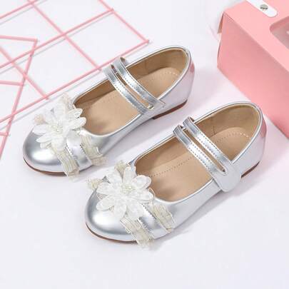 女童银色蕾丝花朵珍珠玛丽珍鞋,闪亮公主风童鞋 - 銀色 - 查看 1