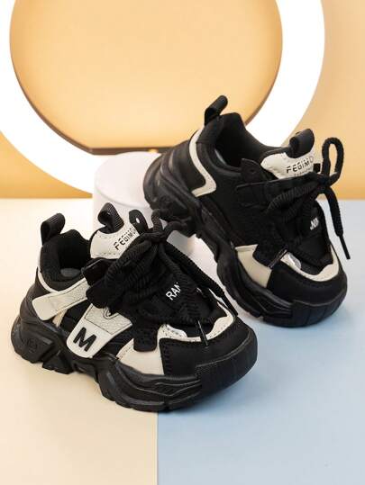 女童运动鞋秋季新款韩版儿童厚底鞋女孩运动鞋透气男童跑步鞋潮流 - 黑色 - 查看 1
