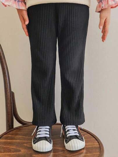 DAZY 女童纯色直筒裤,年轻女孩秋装 - 黑色 - 查看 1