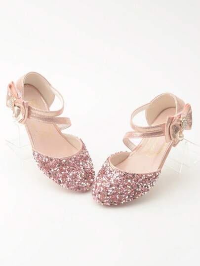 女童春季風格高跟公主鞋,皮鞋,舞臺演出鞋搭配正式裙金色水晶鞋 - 粉色 - 查看 1