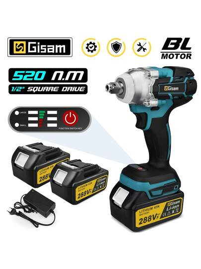 Gisam 520N.M Brushless Electric Impact Wrench Cordless Electric Wrench 1/2inch For Makita 18V Battery Pin Screwdriver Power Tool