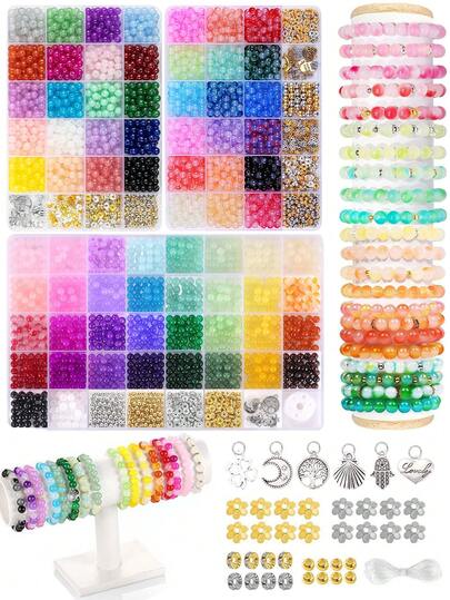 玻璃珠套装,多种颜色和款式,圆形玻璃珠饰品制作套装,DIY手链、耳环、项链工艺品,友谊礼物 - 玻璃珠套裝 - 查看 20