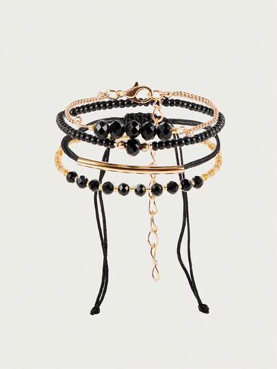Glisma 4 件套时尚黑水晶手工串珠手链套装,适合女士,时尚度假派对珠宝礼物 - 黑色 - 查看 1