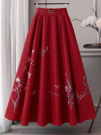 GlowEve CURVE 大码印花复古优雅荷叶边半身裙 - 紅色 - 查看 1