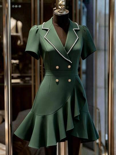 GlowEve CURVE 大码女士优雅交叉荷叶边袖连衣裙,适合春夏、度假、通勤、办公、派对、约会、暑假、毕业典礼、情人节、音乐节、母亲节、万圣节、感恩节、复活节、国庆节、舞会、约会派对、婚礼季、户外活动等场合。