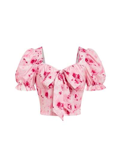 GlowEve 新款方领短袖编织蝴蝶结系带优雅可爱百搭修身女式衬衫 - 彩色 - 查看 1