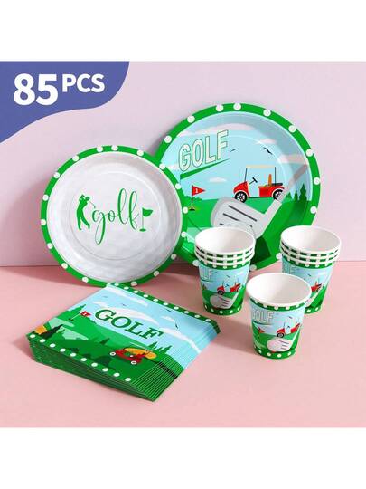 高尔夫主题一次性餐盘、餐巾纸和杯子套装,可供20位客人使用。这款一次性派对套装(包括餐盘、餐巾纸和杯子)非常适合生日派对、婚礼和家庭野餐。