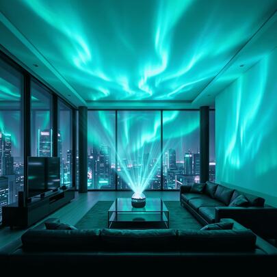 绚丽星空极光LED投影灯,遥控可调光,适用于卧室、儿童房装饰