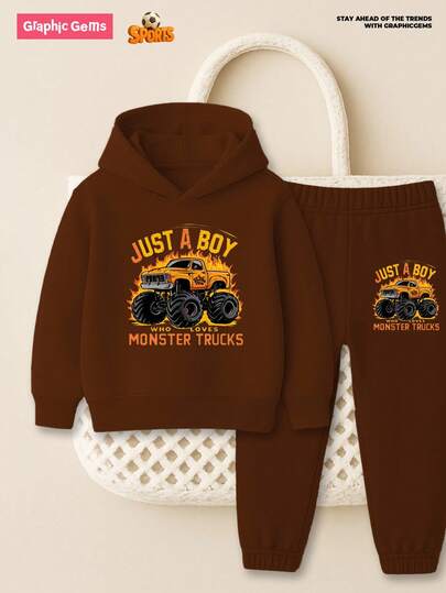 GraphicGems 2 件装年轻男孩火焰卡车连帽衫和运动裤套装 - 棕色 - 查看 1