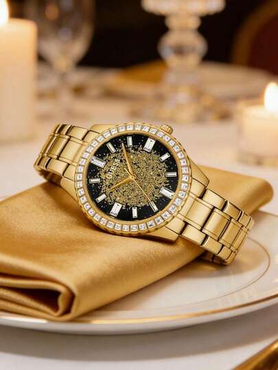 Guess 女士奢华金表,黑色表盘,矩形水晶表圈,闪亮表盘,时尚石英腕表,适合作为礼物 - GW0405L2 - 黑金 - 查看 10