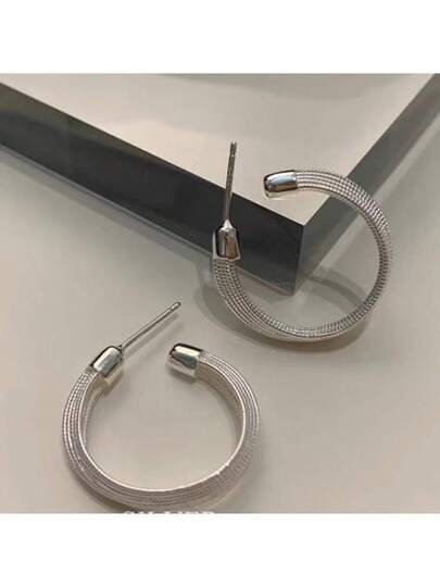 購買s925純銀耳環指南,韓國風格時尚扭曲c設計復古耳環 - 銀色 - 查看 1