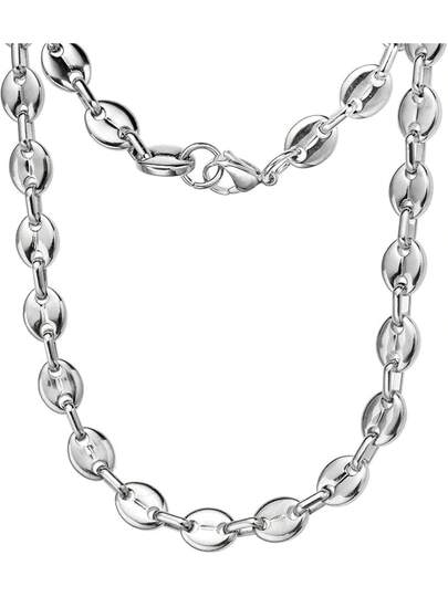 6. HIJONES Stainless Steel Coffee Beans Chain Necklace Bracelet Men Women Minimalist Chunky Hop Jewelry