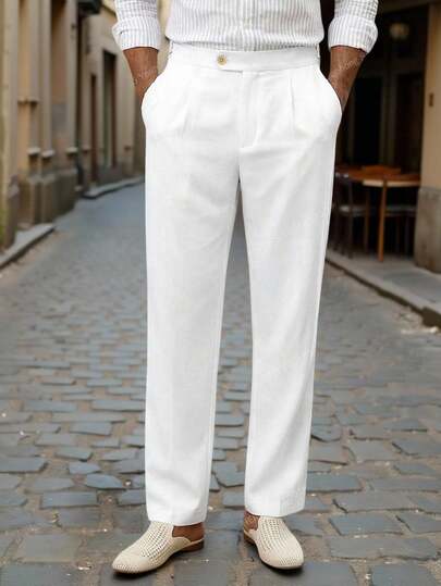 HIMLAND 男士休闲纯色宽松口袋裤 - 白色 - 查看 1